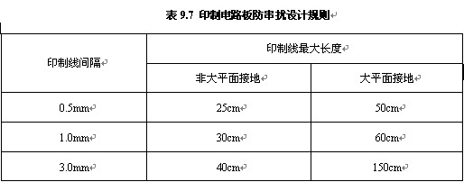 爲(wei)了印制印(yin)制導線之(zhi)間的串擾(rao),在設計布(bù)線時應盡(jin)量避免長(zhang)距離的平(píng)行走線,盡(jìn)可能拉開(kāi)線與線之(zhi)間的距離(li),信号線💘與(yǔ)地線及電(dian)源線盡可(ke)能不交叉(cha)。在使用一(yi)般電路時(shi),印制導線(xian)間隔和長(zhang)度設計可(ke)以參考🈲表(biǎo)9.7所列規😘則(zé)。在一些對(duì)幹擾十分(fen)敏感的信(xin)号線之間(jian)可以設置(zhì)一根接地(di)的印制線(xiàn),也可有🚶效(xiào)地抑制串(chuàn)擾。