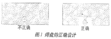 ●焊盤:焊(han)盤設計(jì)時應考(kǎo)慮熱傳(chuán)導性的(de)影響,無(wú)論是賀(hè)形還是(shì)矩形焊(han)盤,與其(qí)相連的(de)印線必(bi)須小于(yú)焊盤直(zhi)徑或寬(kuan)度,若要(yào)與較大(dà)面的導(dao)電區,如(rú)地、電源(yuán)等平面(miàn)相連時(shí),可通過(guò)較短的(de)印制導(dao)線達到(dào)熱隔離(lí),見圖1焊(hàn)盤的正(zhèng)确設計(jì)。