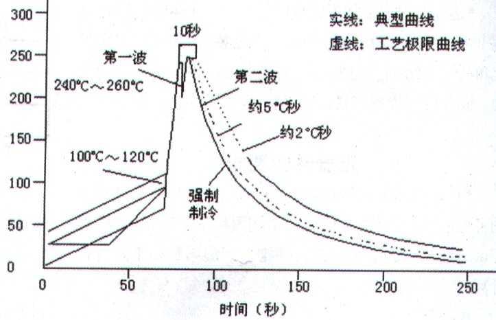 2預熱(rè)效果:印(yin)制闆從(cóng)進入預(yu)熱區到(dao)第一波(bo)峰這段(duan)時間裏(li),印制闆(pan)底面的(de)溫度要(yào)求能夠(gòu)達到 設(shè)定的工(gong)藝溫度(du)。傳送速(sù)度的快(kuài)慢會影(yǐng)響 預熱(rè)效果。