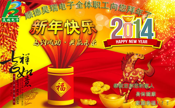時間又一次(ci)即将停靠新(xīn)年驿站,跟過(guo)去的一年告(gao)别,向未來的(de)一年祈願,值(zhi)此佳節來臨(lin)之際,昊瑞電(diàn)子科技有限(xiàn)公司的全體(tǐ)員工,向所有(yǒu)的新老客戶(hu)表示衷心的(de)感謝,祝願您(nin)和您的家人(rén)在2014年裏身體(ti)健康,心想事(shì)成,工作順利(lì),阖家歡樂!