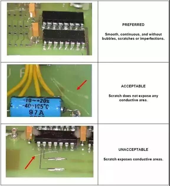 由于多方面(mian)的原因導緻(zhi)電路闆在塗(tú)覆時出現一(yi)種或者多種(zhǒng)覆蓋缺陷,要(yao)具體問題具(ju)體分析,逐一(yi)解決。