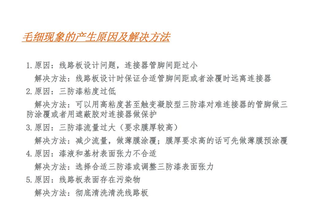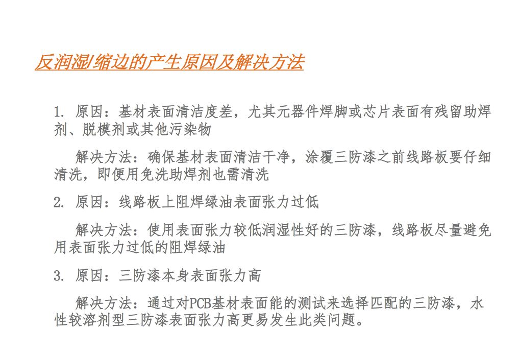 (3)PCBA表面、容器、三(san)防漆中混有(yǒu)水分;